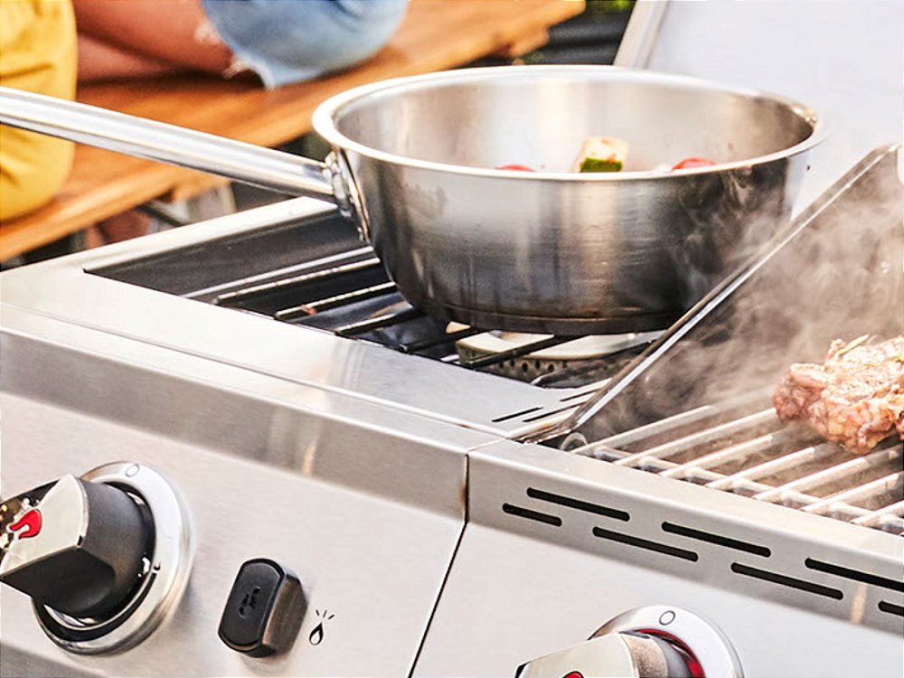 Prepare seu molho ideal ou acompanhamento de sua preferência no fogareiro lateral.